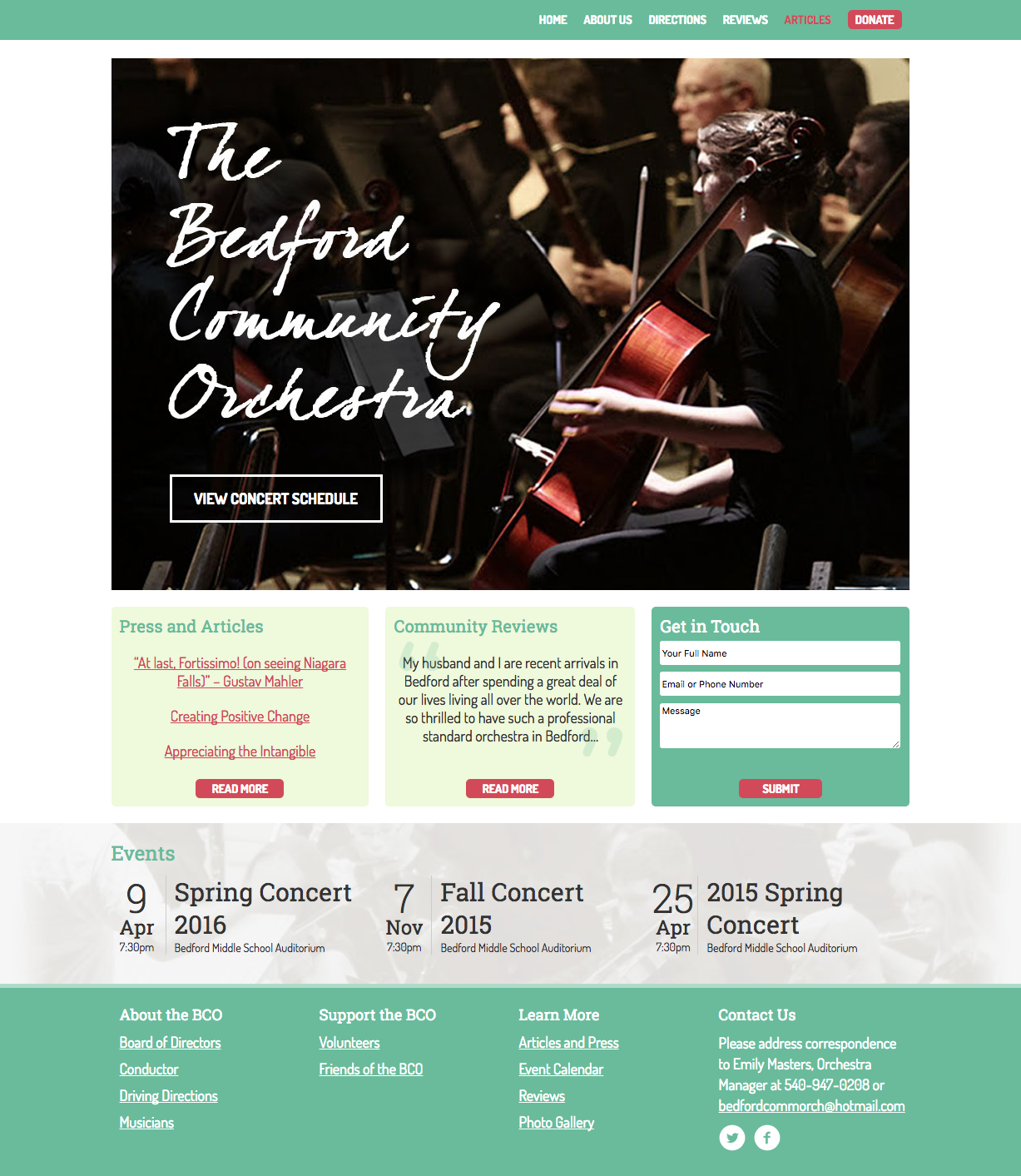 The Bedford Community Orchestra’s website serves as a place for the orchestra to provide the community with updates and interesting information.