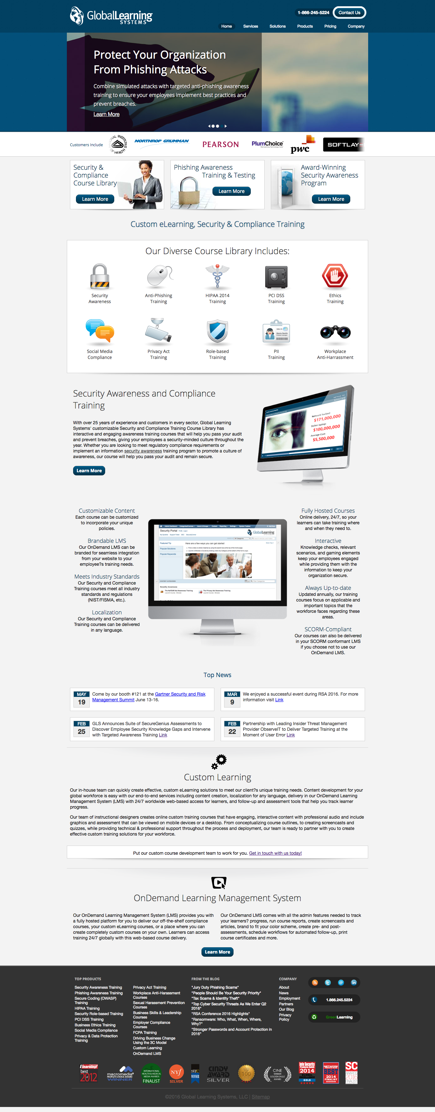 The website for Global Learning Systems uses the ExpressionEngine CMS.